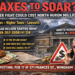 - TAXES TO SOAR – Charter Fight Would Cost North Huron Millions(WINGHAM, NORTH HURON) – North Huron taxpayers may soon be on the hook for a costly legal battle —… Read more: TAXES TO SOAR – Charter Fight Would Cost North Huron Millions