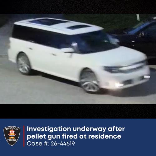 Case #: 26-44619Investigation underway after pellet gun fired at residence The Windsor Police Service is investigating after a residence was struck by gunfire believed to have been from a pellet gun. Shortly after 9 p.m., on April 27, 2026, officers responded to a report of shots fired in the 1500 block of Goyeau Street. […]
