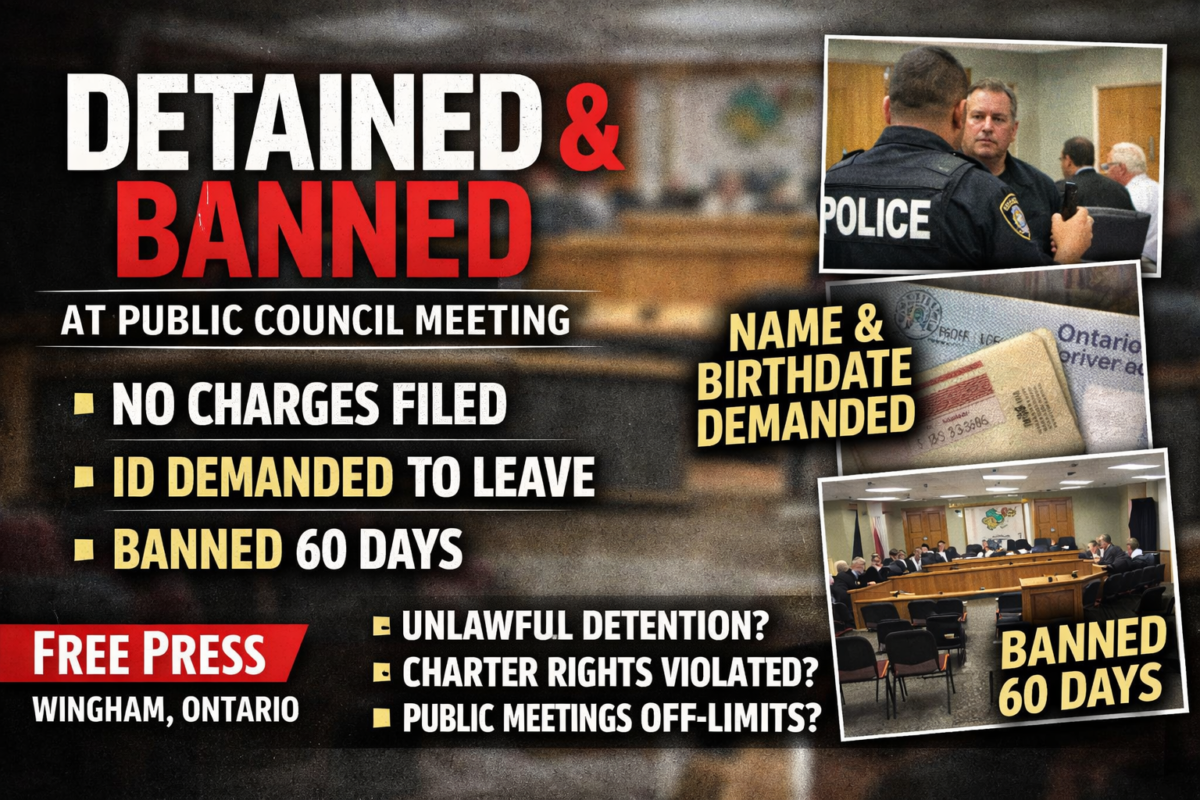 (WINGHAM, North Huron, On) — What should never have happened in a town that prides itself on remembrance finally crossed a line. For days, the flag at the Wingham Cenotaph flew upside down and tattered, a universal signal of distress—after township officials had already been notified. No emergency response. No immediate correction. No public apology. […]