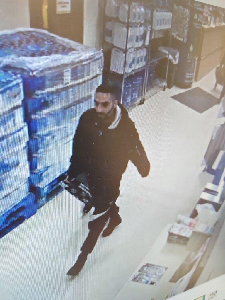 - Middle eastern, mid 20’s, average height, slim build, unshaven, short dark hair, blue puffy jacket, grey hoodie with a black hood.