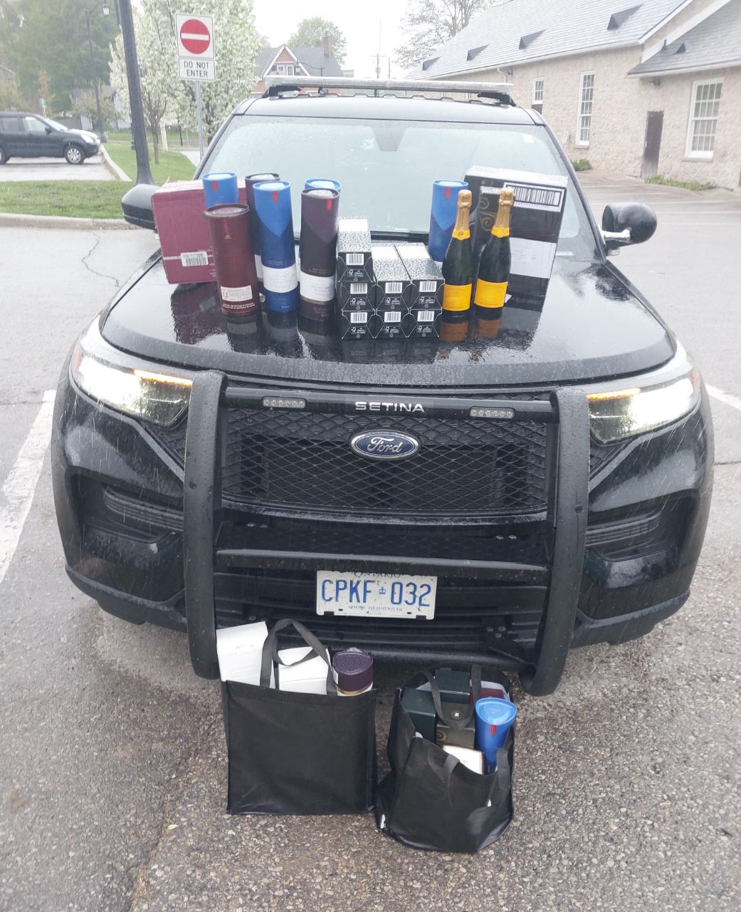 At 7:02 p.m. Wellington County OPP arrived on scene and observed three suspects fleeing the area. A foot pursuit ensued, and one suspect was arrested without incident, and subsequently recovering the stolen alcohol.