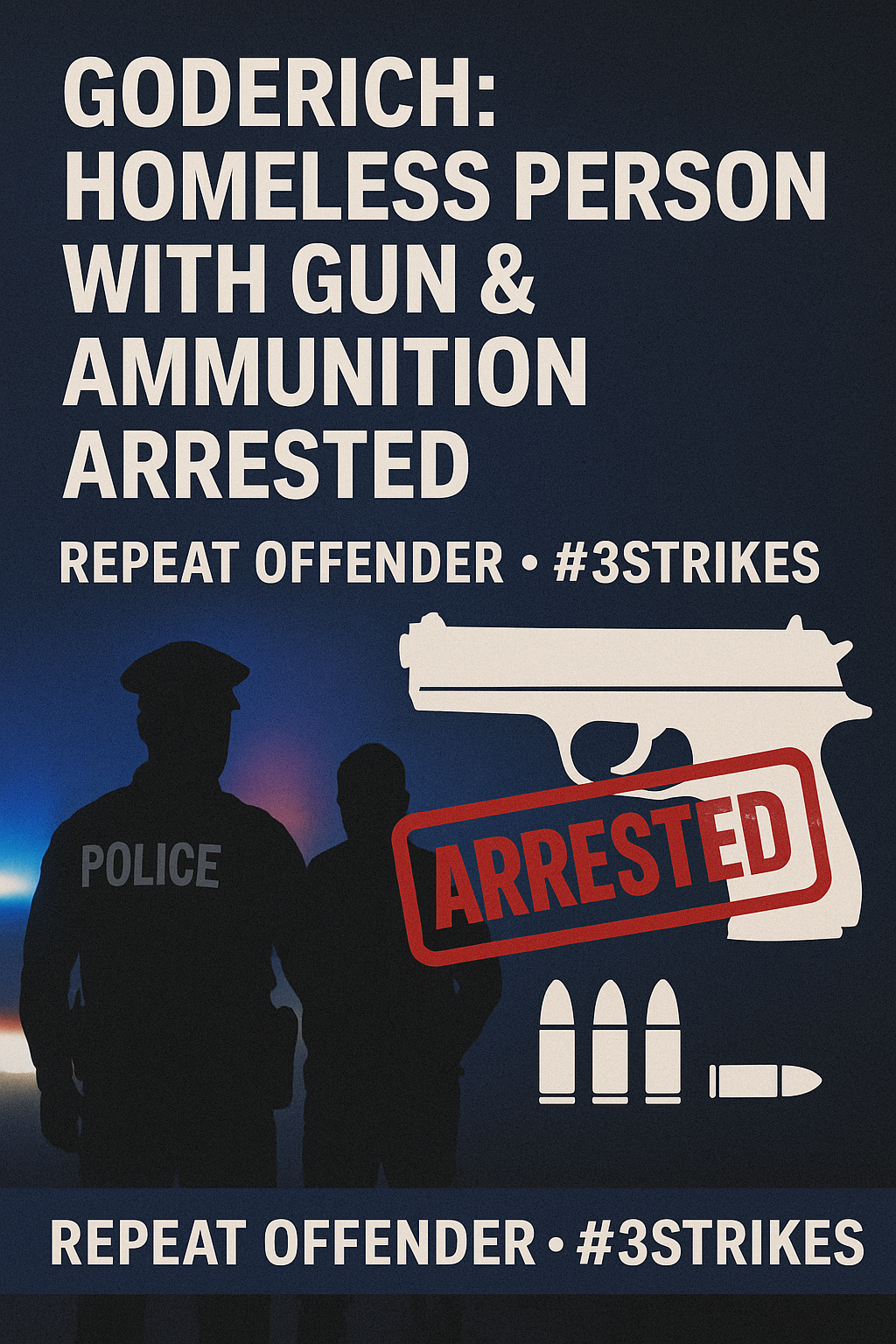 On Friday, August 29th, 2025, just after 3:00 p.m., Huron OPP officers were contacted about an individual who reportedly made threats involving a weapon. Police subsequently located and arrested the individual. Officers located an imitation handgun loaded with pellet ammunition on the accused.