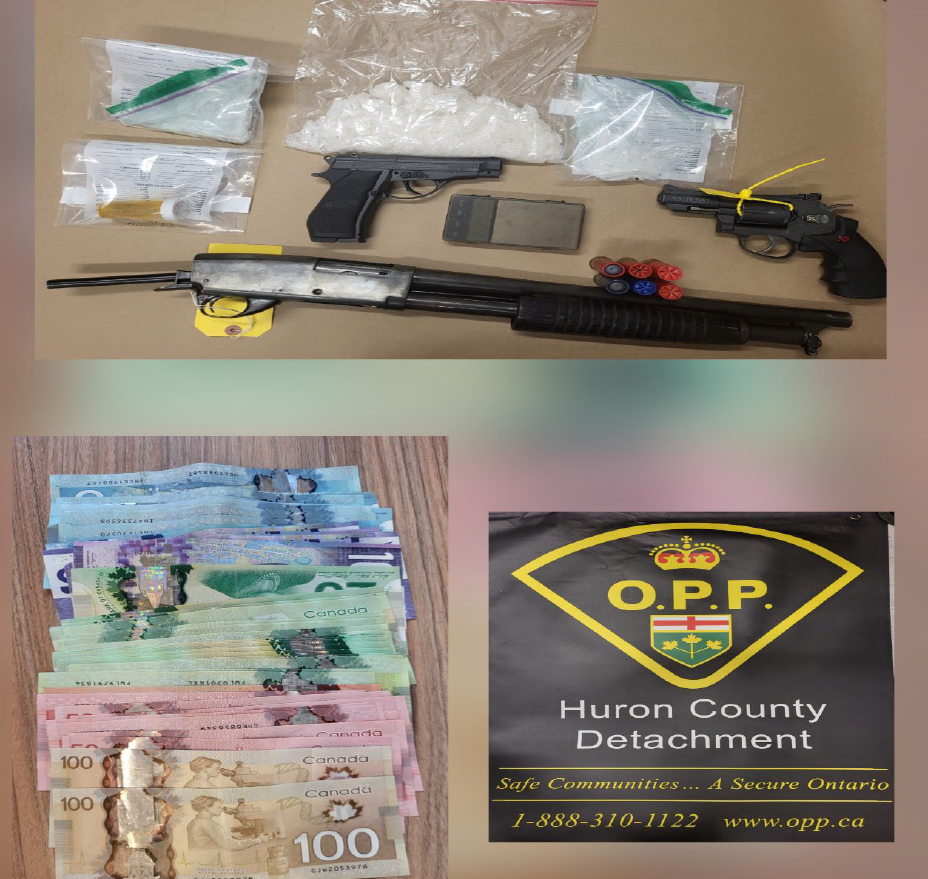 (HURON EAST, ON) – An investigation conducted by officers from the Huron-Perth Ontario Provincial Police (OPP) Community Street Crimes Unit (CSCU) resulted in the seizure of illegal drugs, weapons, and offence-related property. Criminal charges have been laid against a Huron County resident.