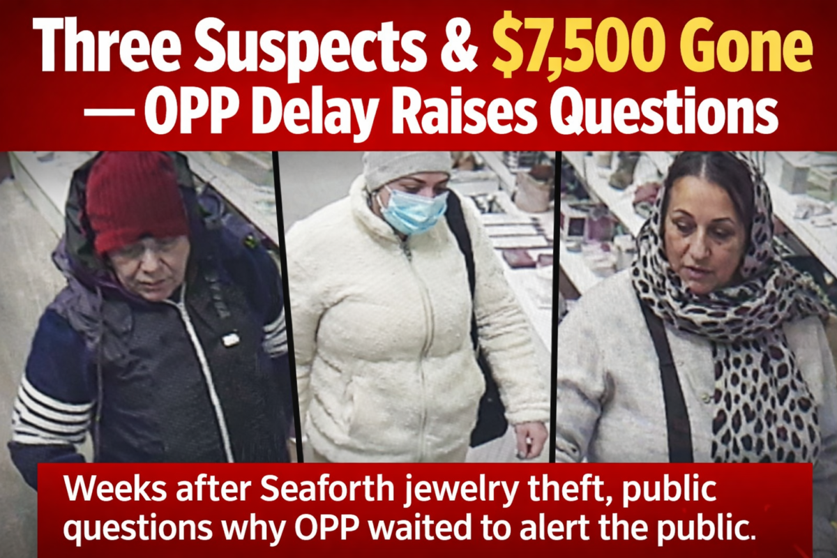 On February 07, 2026, three women entered a jewelry store on Main Street South in Seaforth. The three culprits worked as a team and utilized distraction techniques with staff to successfully steal three rings, worth over $7,500.