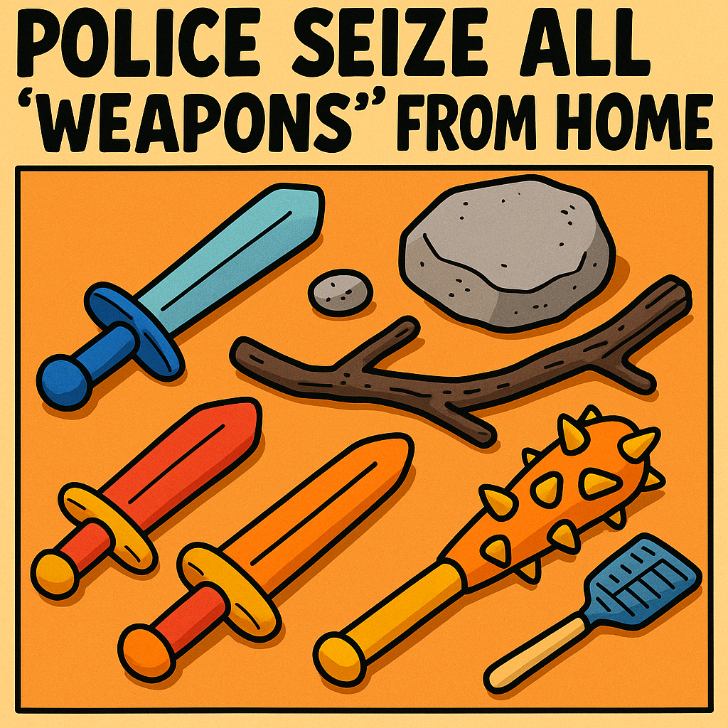 Upon arrival, the individual temporarily barricaded themselves inside their residence and brandished a replica sword to police. The accused eventually surrendered without incident and was cooperative with police. For public safety, the replica swords, a replica gun (air gun) and knives were seized from the scene.