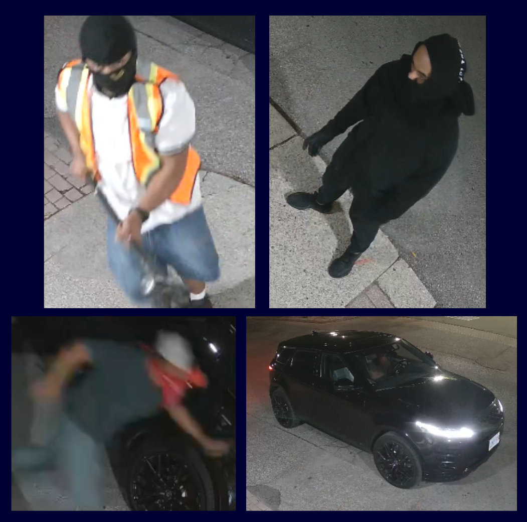 Upon review of CCTV footage, it was observed that a black Range Rover SUV pulled up to the business. Two men exited the vehicle and one used a sledgehammer to break open the door. The men were seen on video making two trips from inside the business to the awaiting vehicle with armfuls of merchandise.