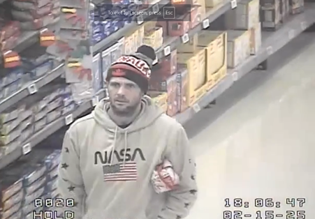On Sunday February 16th, 2025 police were contacted by a business at 1063 Talbot for a theft. The male pictured took 4 boxes of Lego, Red bull drink, 2 packages of batteries and a loaf of bread prior to walking past all points of purchase and fleeing to a waiting Red Dodge Caravan. Police are looking for public assistance in identifying the male pictured. If you recognized him please contact police at 519-631-1224 or Crime Stoppers. (ST25002590)