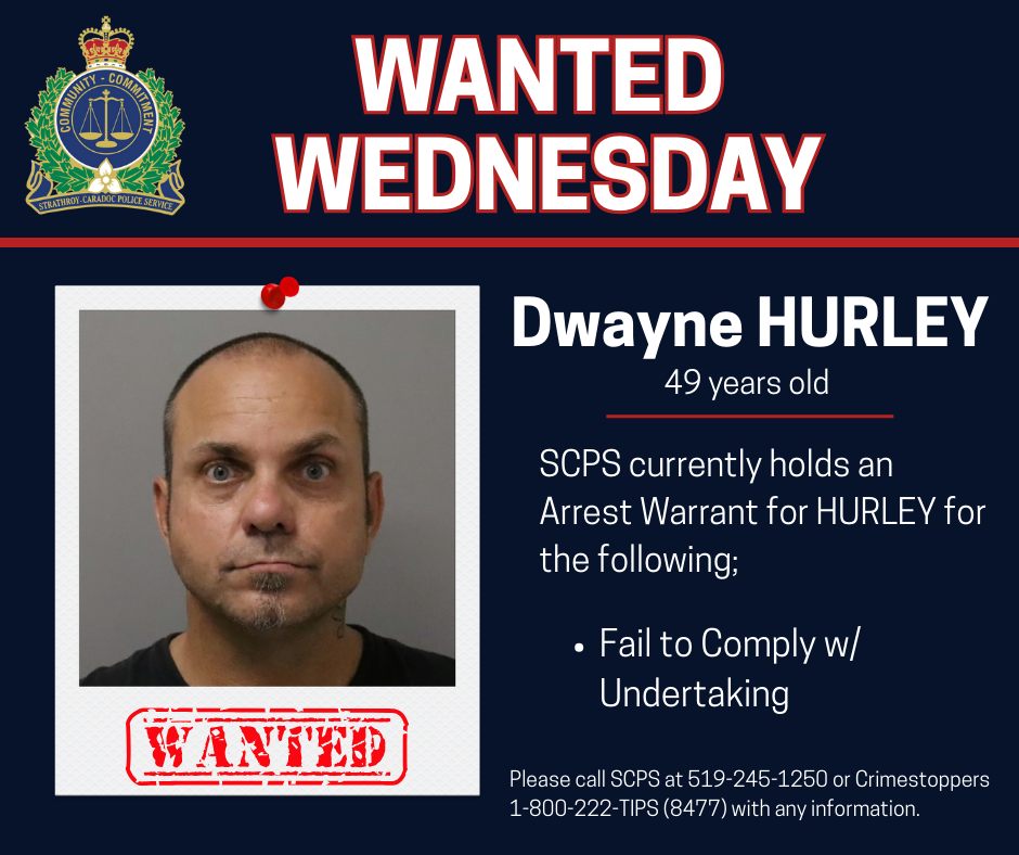 SCPS is urging HURLEY to turn himself in immediately to the Strathroy-Caradoc Police Service located at 299 Frances Street.