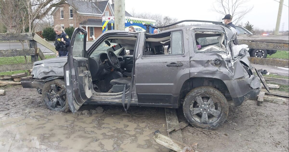 On April 14, 2024, shortly before 8:30 a.m., L&A County OPP responded to a single vehicle collision on County Road 1 just west of Jim Kimmett Blvd. Police, Fire, and Paramedic Services all responded. The vehicle had left the roadway entering the ditch and rolled over striking a hydro pole. The only occupant of the vehicle was transported to hospital with major injuries. The collision scene was held for several hours resulting in a partial road closure. The investigation is continuing, no charges have been laid.