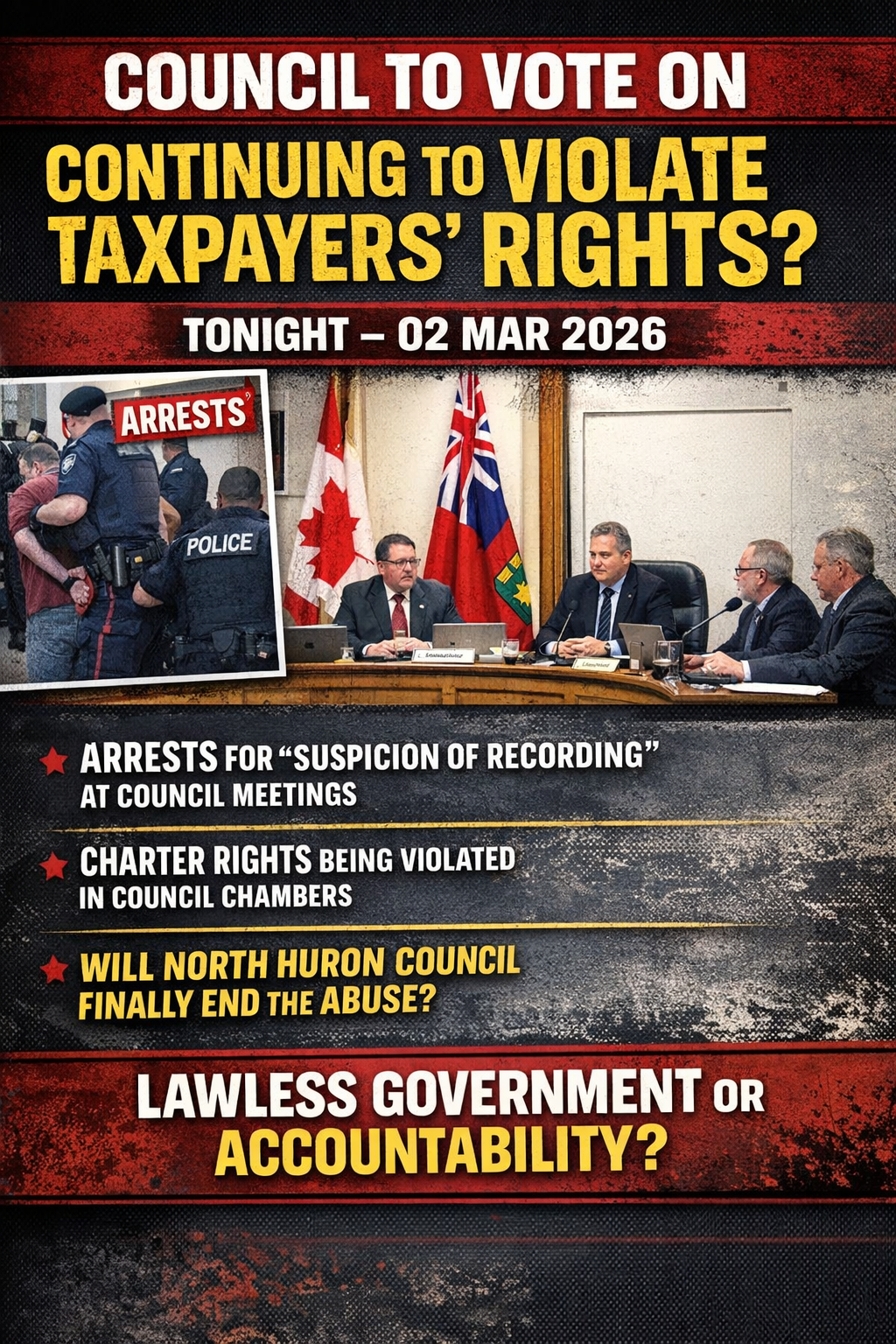 Council is scheduled to vote on whether to continue enforcing policies that have led to threats, intimidation, and arrests of citizens who assert their Charter-protected rights inside Council Chambers.