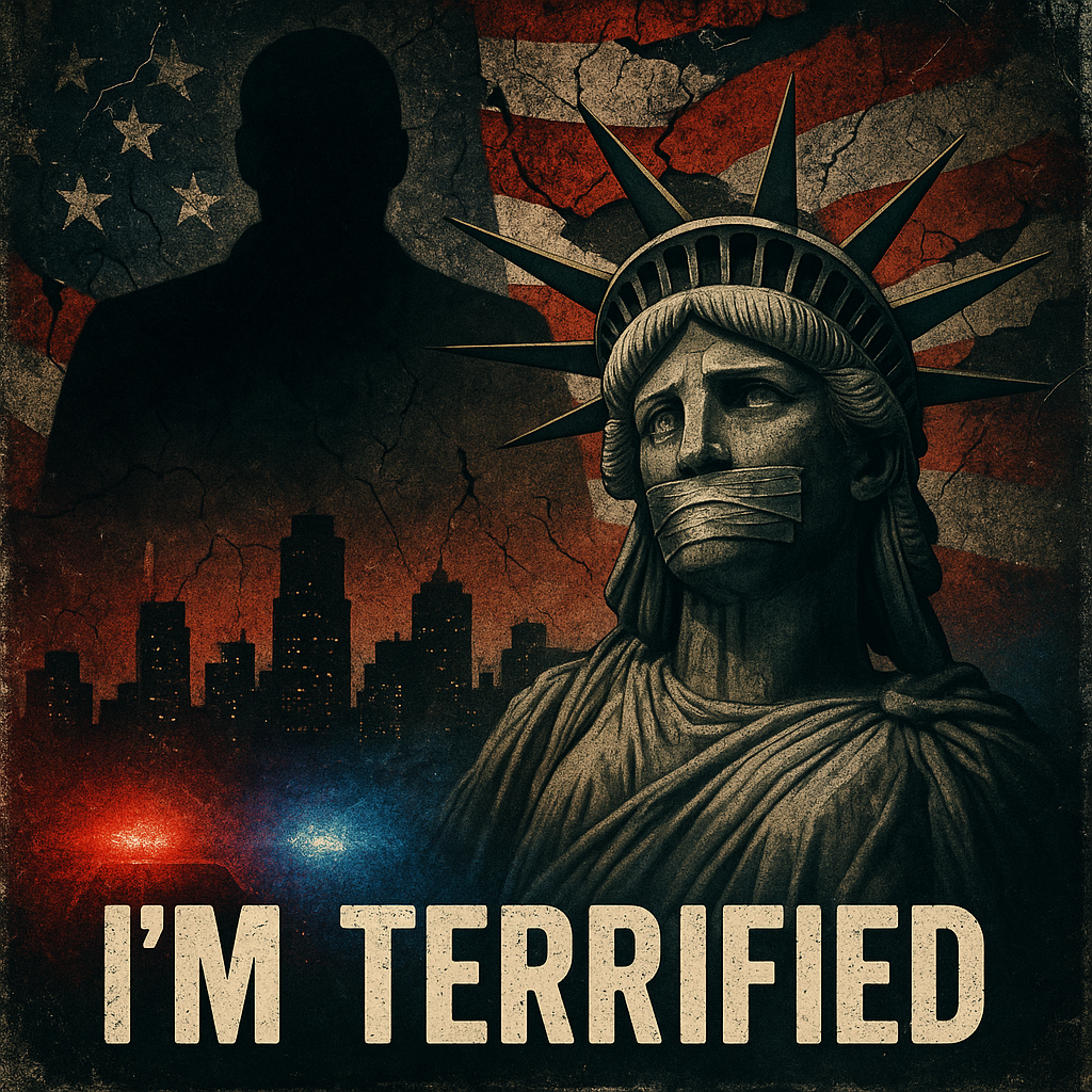 The track, titled “I’m Terrified Trump’s a Terrorist,” by Wingham Wakening, describes a nation living in fear amid restrictions on free speech. The song’s refrain — “I’m terrified that Trump’s a terrorist” — is repeated throughout, with verses referencing late-night hosts Jimmy Kimmel and Stephen Colbert being forced off the air.