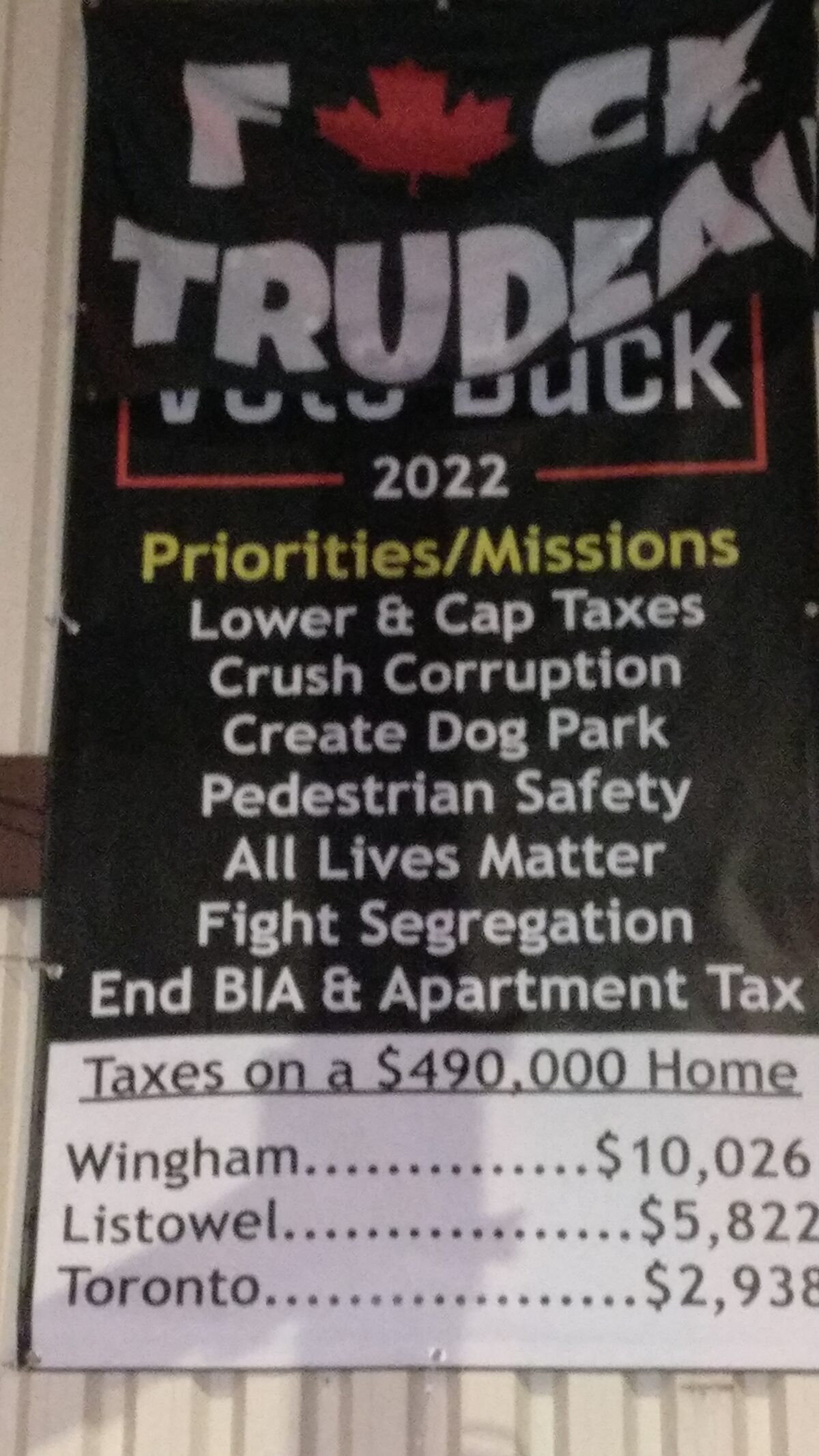 In a bizarre control/censorship crackdown Wingham Town Hall is demanding a Wingham restaurant secure a F*ck Trudeau Flag across from the Cenotaph so it can be fully seen on Remembrance Day.