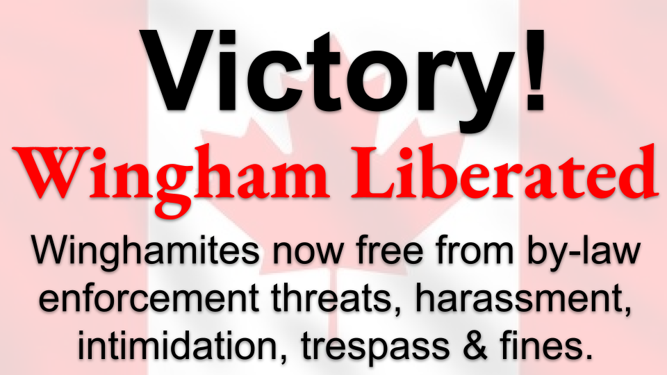 Another victory is being declared in the 12+ year battle to liberate Wingham from an abusive and corrupt authoritarian regime. In 2019 it was the disbanding of the Wingham Police, and today (23July2023) all of Wingham has been liberated from corrupt and overreaching by-law enforcement officers.